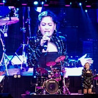 Transitioning into the 80s, the artists didn’t miss a beat. Dessa appeared in a leather zipper jacket with a sequined collar, capturing the edgy fashion of the time. Kata evoked Madonna’s iconic 80s look with wavy blonde locks adorned with a large black bow, wearing a gold jumpsuit that reflected the bold fashion trends of the decade. Her performance of Madonna’s “Borderline” was instantly recognizable, setting the mood for the rest of the 80s set. She captured the essence of the song, bringing back memories for many in the audience.